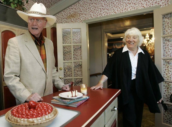 In this Thursday, Oct. 9, 2008 file photo, actor Larry Hagman and his wife Maj, visit the kitchen area of the Southfork Ranch mansion in Parker, Texas made famous in the television show "Dallas." Actor Larry Hagman, who for more than a decade played villainous patriarch JR Ewing in the TV soap Dallas, has died at the age of 81, his family said Saturday Nov. 24, 2012.Tony Gutierrez/The Associated Press