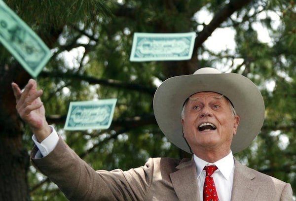Actor Larry Hagman throws fake dollars notes during a photocall at the 50th Monte Carlo television festival in Monaco in this June 8, 2010 file photo. Mr. Hagman, who created one of American television's most supreme villains in the conniving, amoral oilman J.R. Ewing of "Dallas," died on November 23, 2012 at the age of 81.ERIC GAILLARD/Reuters