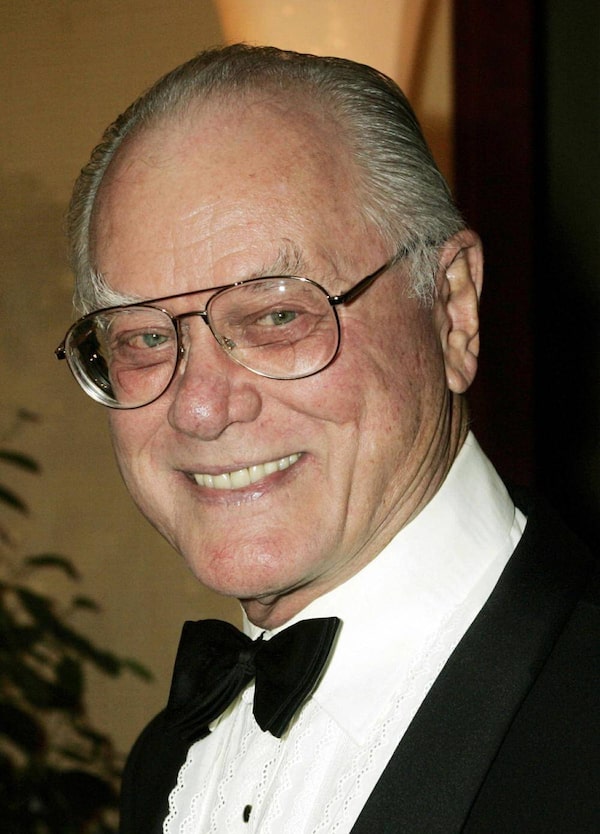 Door man Malik Fawzi greets actor Larry Hagman at the Omni Dallas Hotel in Dallas, Texas on Nov. 7, 2012, as the hotel was preparing to celebrate its one year anniversary. Mr. Hagman, who for more than a decade played villainous patriarch JR Ewing in the TV soap Dallas, has died at the age of 81, his family said Saturday Nov. 24, 2012.Michael Ainsworth/The Associated Press