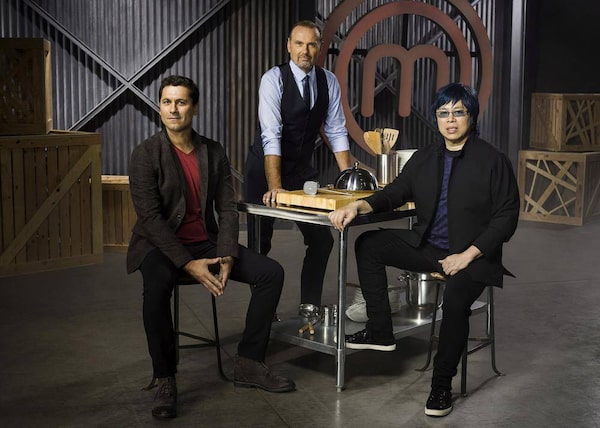 From left, restaurateurs Claudio Aprile, Michael Bonacini and Alvin Leung will put home chef contestants through their paces on the new CTV show Masterchef Canada, debuting in the winter of 2014.The Canadian Press