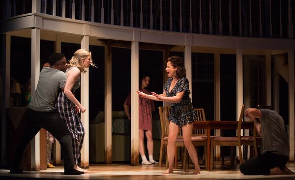 Maxwell’s production isn’t about star turns, but family dynamics, and her actors bring out the richness in Letts’s writing. You find your heart going out to one character after another: Beaty’s Barbara, crying hopelessly as her husband walks out the door. Monteith’s Ivy, turning away and wincing in pain as her mother digs into her. Prest’s awkward Little Charles, in one of his rare happy moments, gently serenading Ivy with a sweet, silly song he’s composed.