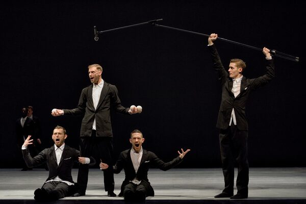 I had more profound problems with Walerski’s Petite Cérémonie, a 2011 piece set to a range of classical music and showtunes, featuring 15 dancers dressed in black evening attire. There are strong moments, such as a dramatic and imagistic beginning: The dancers form a line across the stage, tapping a sickled foot on the floor with an ironic sense of precision. Walerski also creates fraught, intimate tensions in his pas de deux, which suggest both sex and strife. But the puerile spoken text about the enduring differences between men and women might only satisfy the Jordan Petersons in the audience, and certain campy theatrical effects – such as breaking the fourth wall to laugh directly at the audience – feel blatantly derivative of Alexander Ekman’s Cacti, made the year before.