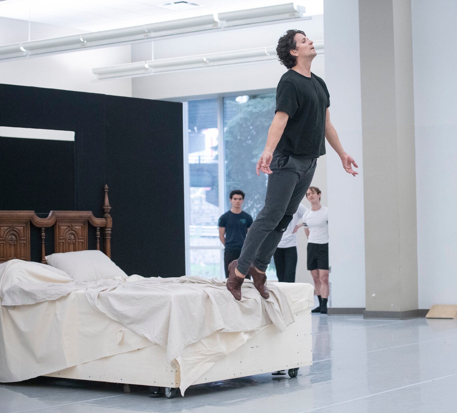 At the NBoC studios on Queens Quay West, Côté flings his body off a bed, then plummets to the ground. He intertwines his limbs with those of three other dancers. When the music stops, he sticks his tongue out, joking and giggling with his collaborators between sips of water – dancing at this level is hard, physical work. But it’s playful, too.