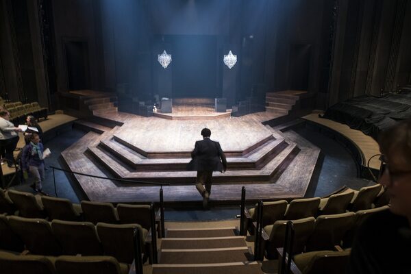 Stratford Festival artistic director Antoni Cimolino walks onto the stage following a dress rehearsal. The theatre company announced 495 layoffs on Friday due to the coronavirus outbreak.Chris Young/The Globe and Mail