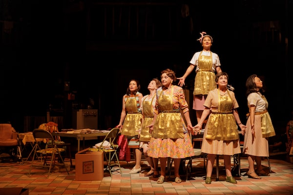 From left: Irene Poole as Thérèse Dubuc, Shannon Taylor as Marie-Ange Brouillette, Lucy Peacock as Germaine Lauzon, Jennifer Villaverde as Lisette de Courval, Seana McKenna as Rose Ouimet and Jane Luk as Gabrielle Jodoin in Les Belles-Soeurs. Stratford Festival 2023. Photo by David Hou.David Hou/Stratford Festival
