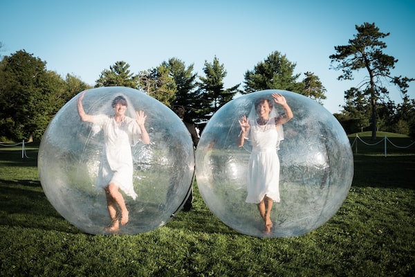 Staged outdoors in Barrie, Ont., captured in a short video, this National Arts Centre-funded “Grand Act of Theatre” went viral: 1.2 million Facebook views and counting. Created by director Mitchell Cushman, designer Anahita Dehbonehie and choreographer Cameron Carver, its conceit is simple: a wedding where all involved are inside literal bubbles. A violinist playing in one plastic bubble; a flower girl spreading petals in another; the brides writing “I do” in condensation left by their breath on their respective bubbles. A neat-o nugget of uplift.