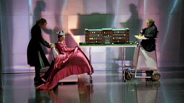 In various places on the English parts of the NAC's sprawling website, former artistic director Denis Marleau's technologically innovative production was sold as "the story of a legless cripple who invites a bunch of legless cripples to a birthday party for a legless cripple."