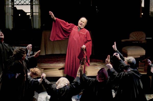 Orgon (Joey Tremblay), a Great War hero and wealthy fish merchant, has fallen under the spell of an evangelical minister named Tartuffe (a sweaty and whispering Andy Jones). Having already given him much of his money, Orgon now outrages his family by promising Tartuffe his daughter, Mariane (Leah Doz), who was already engaged to Valere (David Coomber).