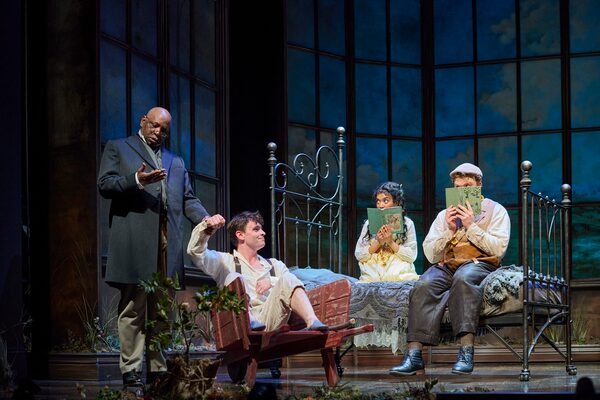 As the seasons shift from winter to summer, the girl befriends the gardener Weatherstaff (David Adams), Martha’s kind brother Dickon (Drew Plummer) and a robin red-breast (played by Tama Martin, manipulating a simple puppet as she bobs across the stage, and a flautist in the orchestra pit).