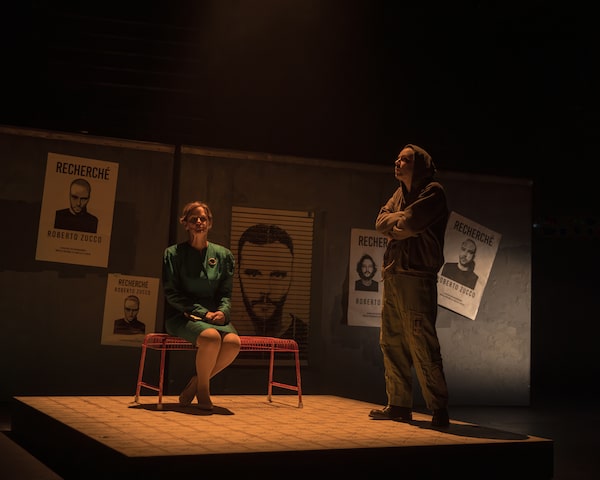 Fiona Highet, left, and Jakob Ehman in Roberto Zucco. Highet is a standout as Zucco’s dismissive mother, a screaming prostitute, and a woman Zucco encounters in a park who is so callous and self-centred she frightens the multiple murderer.Jeremy Mimnagh/Buddies in Bad Times Theatre