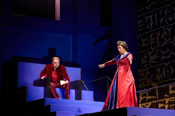 Wood stars as Nabucco, left, and Mary Elizabeth Williams plays Abigaille, the king's eldest daughter and first in line to the throne.Michael Cooper/Canadian Opera Company