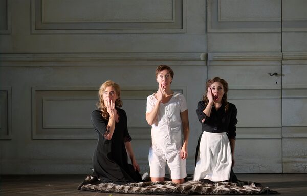 From left to right, Lauren Fagan as the Countess, Emily Fons as Cherubino, and Andrea Carroll as Susanna in the Canadian Opera Company’s production of The Marriage of Figaro.Michael Cooper 2022 coopershoots.com/Canadian Opera Company