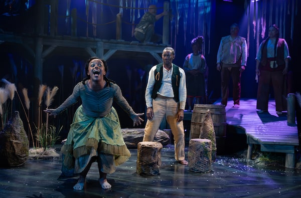 Helen Belay, left, and Daren A. Herbert perform with cast members Troy Adams, Emerjade Simms, Brandon Oakes and Nicole Joy-Fraser in Come Home - The Legend of Daddy Hall at Tarragon Theatre.Cylla von Tiedemann/Tarragon Theatre