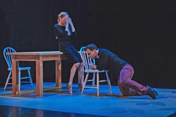 It’s fascinating to come across a work of art in which your real-time experience of watching ends up feeling discordant with the takeaway. Kudelka isn’t interested in virtuosity or any technically ambitious movement here (while Hart has done some postretirement dancing, her career has been effectively over for almost 15 years). Rather, he places two very different performers on stage and asks us to consider them simply as they are. There’s a table and a couple of chairs for them to interact with and, in two contiguous solos, they develop natural physical idioms for moving and being in the space. The content feels so spare and slack in these sequences that its thinness draws attention to itself. Is this paucity deliberate? Where can it go?