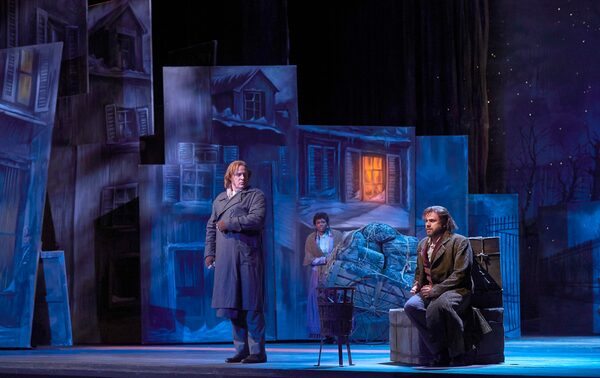 It’s more difficult than you might think to articulate why John Caird’s production of La Bohème is so satisfying. The curtain opens on an apartment that looks like it’s inhabited by four young creative types – complete with their charming sort of squalor – and we are dropped into an earthy world. The bohemians introduce themselves organically, offering glimpses of their craft that colour their personalities: There’s the quiet writer-type (Rodolfo), the gregarious painter (Marcello), the scene-stealing musician (Schaunard) and the overthinking philosopher (Colline). Also in the artsy gang are two women: Musetta, who lives practically in order to surround herself with beauty, and Mimi, who faces her difficult life with a stillness and much gratitude.