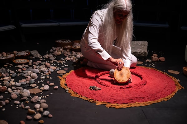 As the show opens, Lauzon shares that elders taught her that rocks are the skin of the Earth, and that they hold stories if you’re open to hearing them. She shows the rocks she’s collected over the years. Some look like mismatched socks; another, like Elvis Presley. One is from the Mojave, where a quartz hill is wearing away as dirt bikers gather to practise their skills. All have significance to Lauzon and feel more akin to castmates than props. It’s a light-hearted and gentle set-up for deep existential questioning.