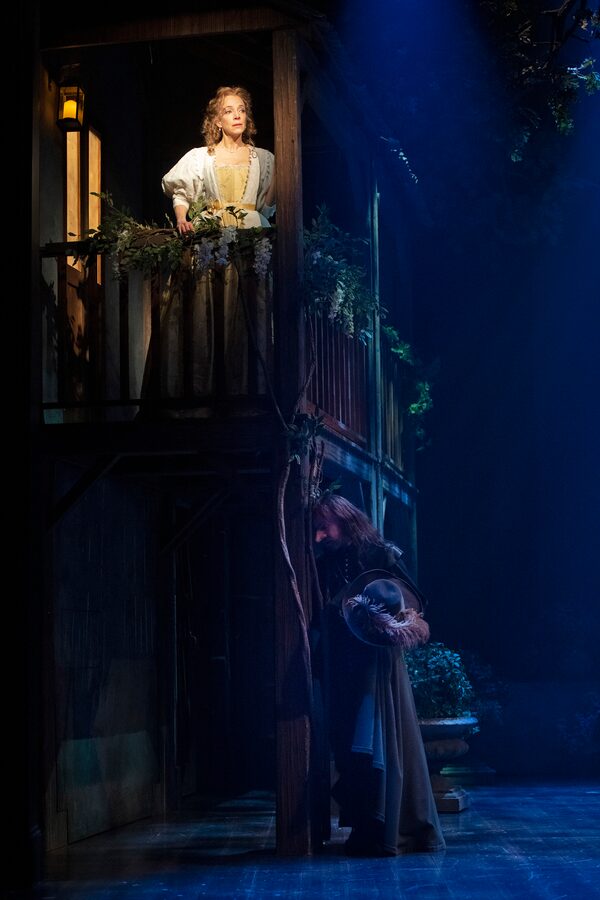 Deborah Hay is back as his cousin Roxane, the object of Cyrano’s affection (hey, it’s the 17th century). The moment she admits to him that she only has eyes for a young cadet named Christian is when this show lands its first emotional punch.