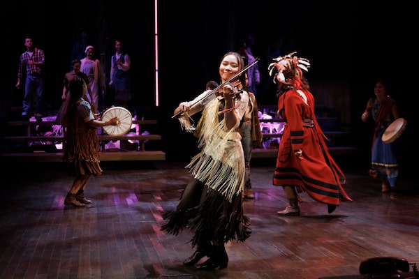 Darla Daniels as the Métis Fiddler with members of the company in The Diviners.David Hou/Stratford Festival