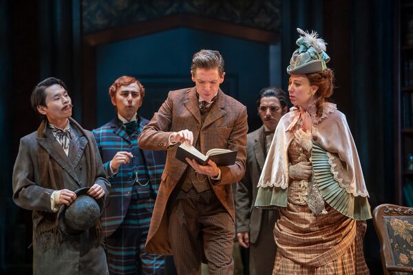 Michael Man (left) as Mr. James Ryder, Kelly Wong as Mr. Jabez Wilson, Damien Atkins as Sherlock Holmes, Johnathan Sousa as Mr. Hall Pycroft and Sochi Fried as Miss Mary Sutherland in Sherlock Holmes and the Mystery of the Human Heart.Emily Cooper/Shaw Festival