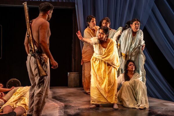 Nina Lee Aquino directs a ruthless, charged production that spares no shock in its examination of a fraught boundary. When child bride Munni regurgitates her wedding gold, it’s impossible to look away, to ignore the suffering woven between the bangles and intricate chains. Bani’s guttural screams of pain, too, shred through the air as Sadiq’s Sonali fishes two bullets from the flesh of her belly.