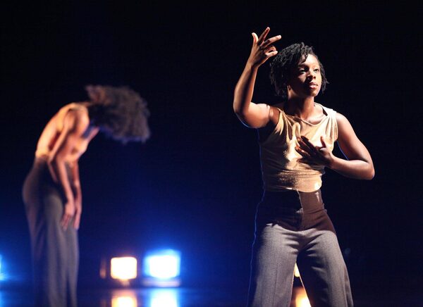 There's a quality to The Radio Show that makes it feel like the unfolding of a dream, with a strip of floor lights that shine to blinding intensity, voiceovers that serve both narrative and ambient ends, and moments of poetic onstage stillness. The website notes tell us the work is about the disappearance of two key black-community stations from the radio waves of Pittsburgh (Abraham's hometown) in 2009, coupled with the deterioration of his father's health from Alzheimer's and aphasia. We get clips of eclectic music – Motown, hip hop, soul, Beyoncé – and vignettes that alternate between telling little stories (a memorable one involves dancer Marcella Lewis primping self-consciously at a hair salon) and stretches of raw expressivity.