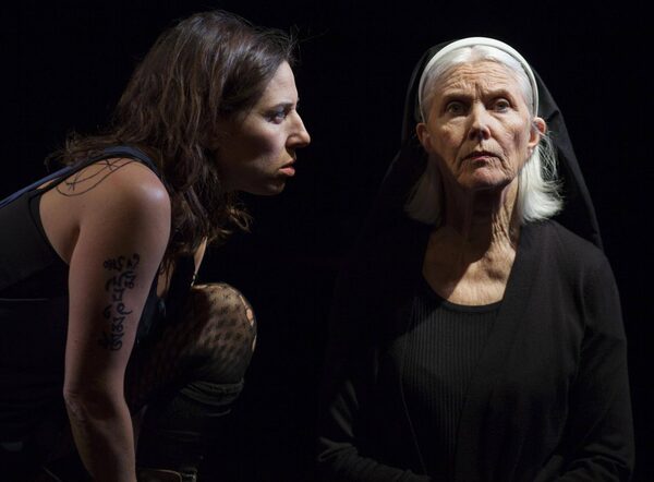 Barbara Gordon is solid as a woman who doesn't fit into the debate (or the play) as well, a nun named Margaret Donaghue, excommunicated for approving an emergency abortion at a Catholic hospital. She has to have her nuanced positions coaxed out of her by the male moderator (a very funny Blair Williams). What makes Unholy a compelling play, however, isn't the ersatz argumentation, but how Flacks cleverly shows how public debates and panels are always, ultimately, performances. This is best illustrated in flashbacks to an encounter between Liz and Maryam at a hotel the night before. Over a bottle of wine, their political positions on religion – crystal clear and sharply articulated on the panel – are revealed to be brands, their actual private feelings to being much more complex.