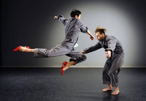 Gan uses lightning fast projections to give a flash card history of Hong Kong. The dancers, meanwhile, are larking about, having fun as they make up physical games. There is a dark side, however, manifested in Remy Siu's cacophonous score. Implicit in the piece is Hong Kong's split personality, the free and easy former British colony now under mainland China control.