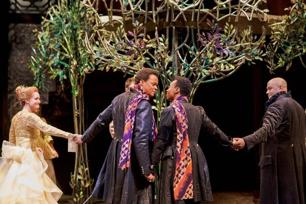From left: Shannon Taylor as Olivia, Michael Blake as Sebastian, Sarah Afful as Viola and E.B. Smith as Orsino in Twelfth Night.Cylla von Tiedemann