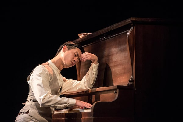 Chinese-Canadian Ho is a Hong Kong native who began writing trace while attending the National Theatre School. As presented at Factory, the two pianos rest on raised platforms, between which Ho negotiates. We hear a metronome, which director Nina Lee Aquino has set to a high pace. Ho and his new work move swiftly: Audiences will need to keep up, as the time-shifting story is without narration and not undemanding to follow.