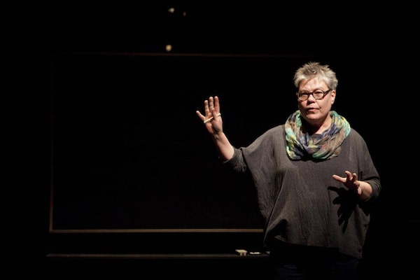 As staged there by Franco Boni, the centre's artistic director, with help from A Brimful of Asha's Ravi Jain, Sea Sick often feels more like a lecture than a performance. Mitchell, looking professorial with her owlish glasses and short grey hair, draws diagrams on a blackboard and conducts a simple experiment involving a piece of chalk and a pitcher of vinegar. The few embellishments include Rebecca Picherack's lighting design, which takes us down into the sea depths with Mitchell, and a soundtrack by Tim Lindsay that draws on the author's favourite musicians, Bob Dylan and Neil Young.