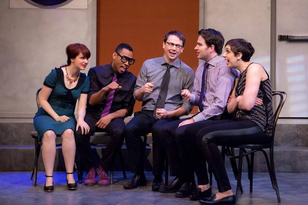 From left, Sarah Hillier, Kevin Vidal, Craig Brown, Connor Thompson and Allison Price, in Second City’s Sixteen Scandals.