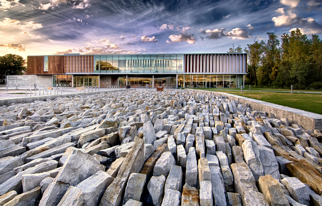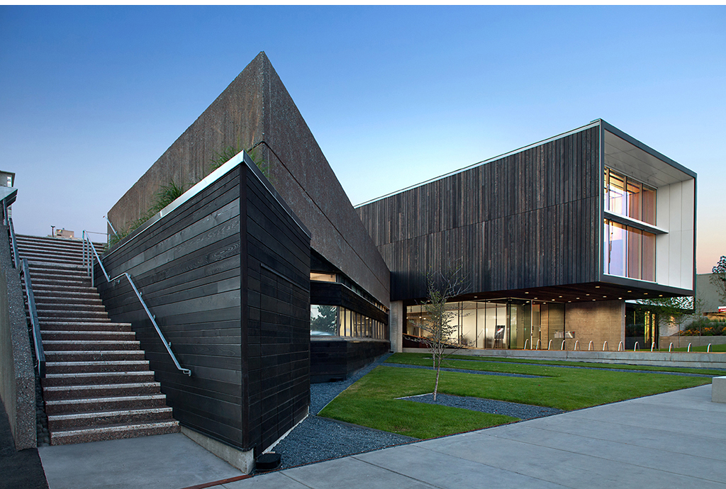 A boldly contemporary add-on to an academic building in a
