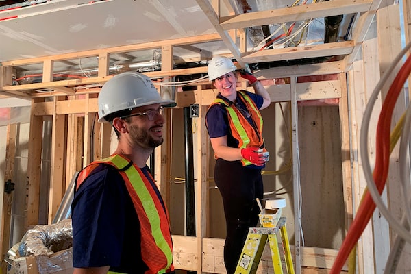 Natalie Zammit, underwriter, management liability (right), and a colleague at AIG Insurance Company of Canada volunteer with Habitat for Humanity.Supplied