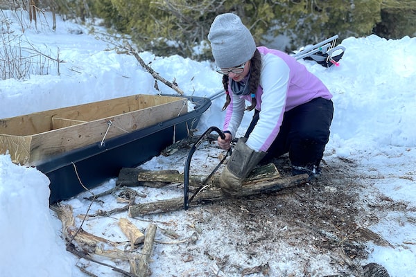 “They start with a 10-kilometre hike across the frozen lake and sleep in quinzhees,” says van Nostrand. “The night before returning, the group sits by a fire and talks about their experiences. They say how during those six days, life slows down. They see and appreciate more, like how good the water tasted or the sound of a bird. Because we practise near-zero food waste, they take those actions back to campus.”