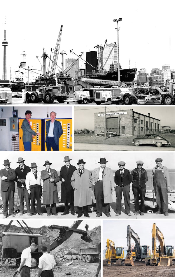 Only 3 per cent of Canadian family enterprises survive to the fourth generation and beyond. Yet Hub Equipment, now a specialty division of Cooper Equipment Rentals, celebrates its 80th anniversary and is still going strong. Founded in 1946 in Moncton, N.B., Hub Equipment’s history reflects milestones in Canadian construction. These include the Toronto Port (top), the Saint Lawrence Seaway, projects in Thunder Bay (third row from top) and later work in the oil and gas industry. Family business leaders including Verne Stevenson (fourth row left and second row left pictured with his son Tom) ensured technology evolved alongside industry needs.SUPPLIED