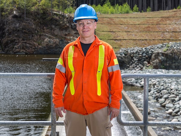 An Evolugen employee at the Kokish River hydro facility in Telegraph Cove, B.C.Provided