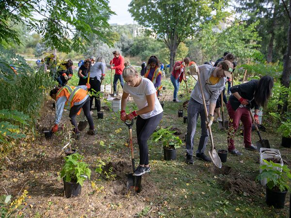 Humber College students and staff planting trees to build a natural habitat for wildlife and improve water quality in Humber Pond.Provided