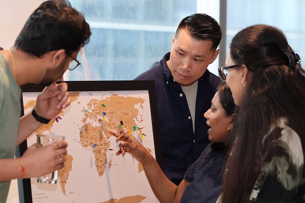 Employees at Fundserv highlight their heritage on a world map during Diversity Day.Supplied