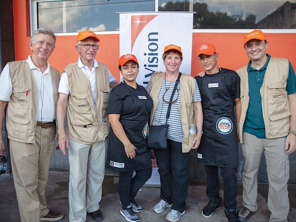 Bob Barrett (second from left) visited cities in Honduras with the World Vision team to see first-hand the impact of the Vision for Vulnerable Youth Initiative.WORLD VISION CANADA