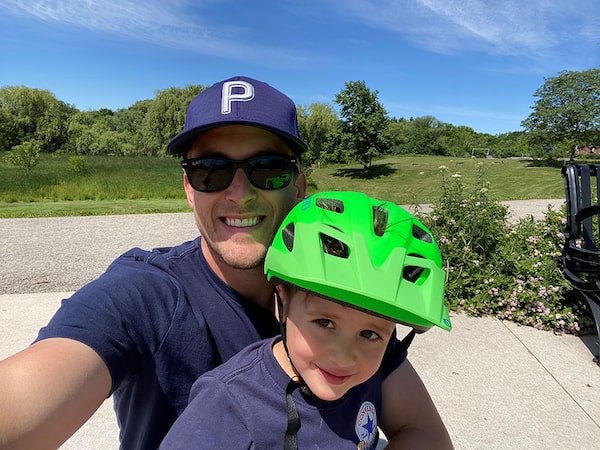 Cameron Hawn, manager, strategic partnerships of Medtronic Canada, enjoying a bike ride with his son.Provided