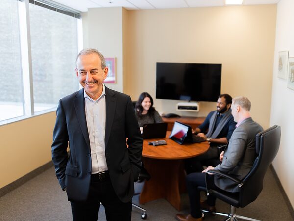 Greg Dinsdale, president & CEO of LBMX, meets with his team.Provided