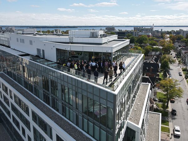 Podium Developments staff gather for the grand opening of a residential development in Kingston, Ont.Provided