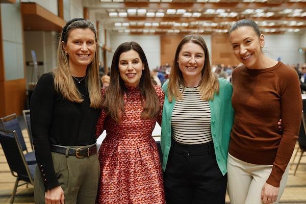 Nancy Nazer, chief human resources officer with OMERS, gathers with members of her team during the annual OMERS and Oxford CEO Connect event. From left: Annie Keele; Nancy Nazer; Shannon Stanjoevic; Anna Servedio.SUPPLIED