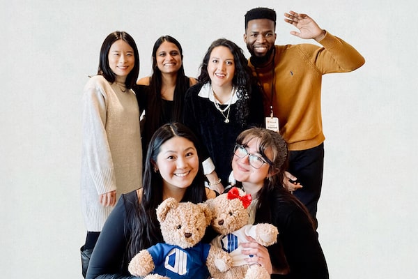 The marketing team at ProServeIT Corporation with the organization's teddy bear mascots, Hope and Hugo.Supplied
