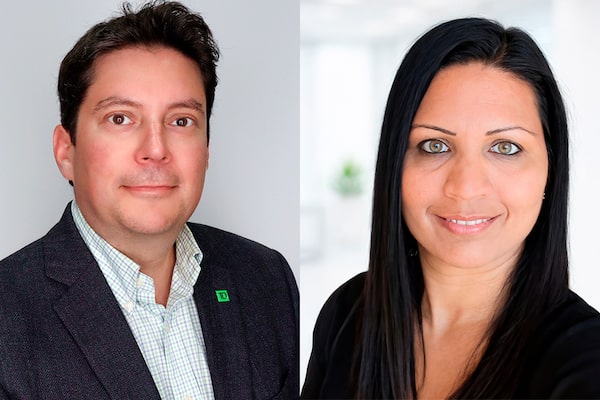 David Handelman, senior manager, climate strategy (left), and Shazia Ali, associate vice-president, enterprise sustainability, at TD Bank Group.Supplied