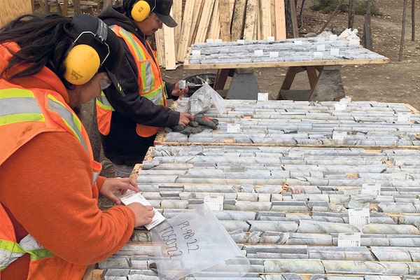 Joseph Kakegamic and Quentin Rae of North Spirit Lake First Nation sampling diamond drill core on the site of the PAK Lithium Project.SUPPLIED