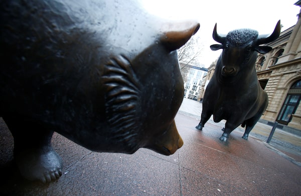 Bull and bear statues are pictured outside Frankfurt's stock exchange in Frankfurt, on Dec. 17, 2015.Ralph Orlowski/Reuters