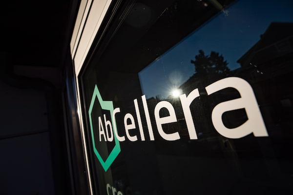 The AbCellera Biologics Inc. logo is seen on a door at the company's offices in Vancouver, on Wednesday, December 2, 2020.DARRYL DYCK/The Globe and Mail