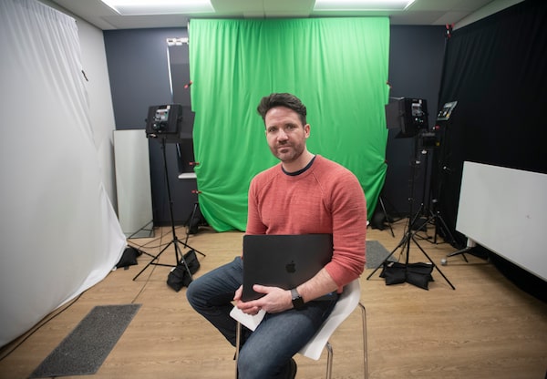 Ryan Patterson started his own AI-powered production house in Toronto. He is given a script and deploys AI to create images and animations to show to clients.Fred Lum/The Globe and Mail
