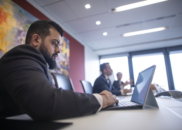 Sarit Pandya, Partner, Real Property and Planning with the law firm McCarthy Tétrault, demonstrates the firm’s use of AI programs, on Feb 22.Fred Lum/The Globe and Mail